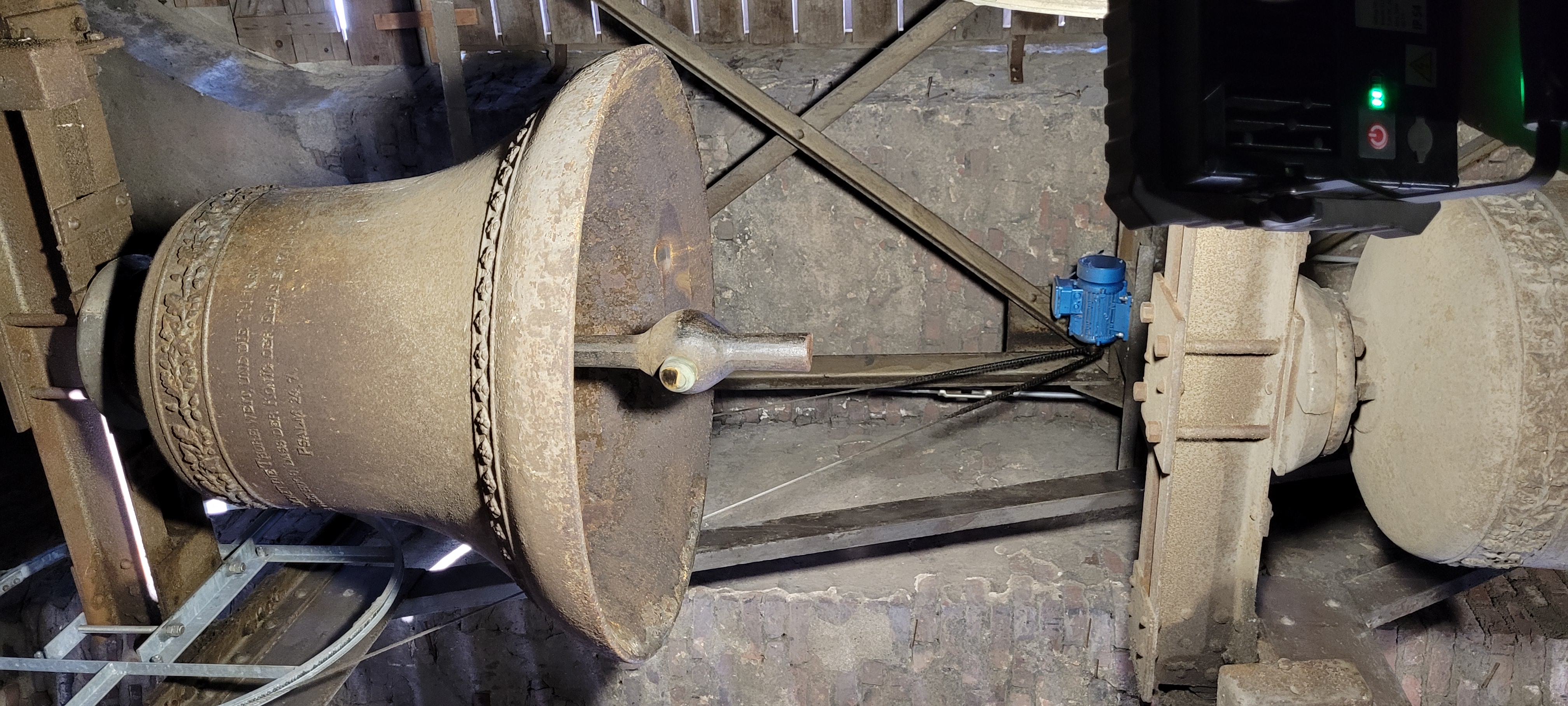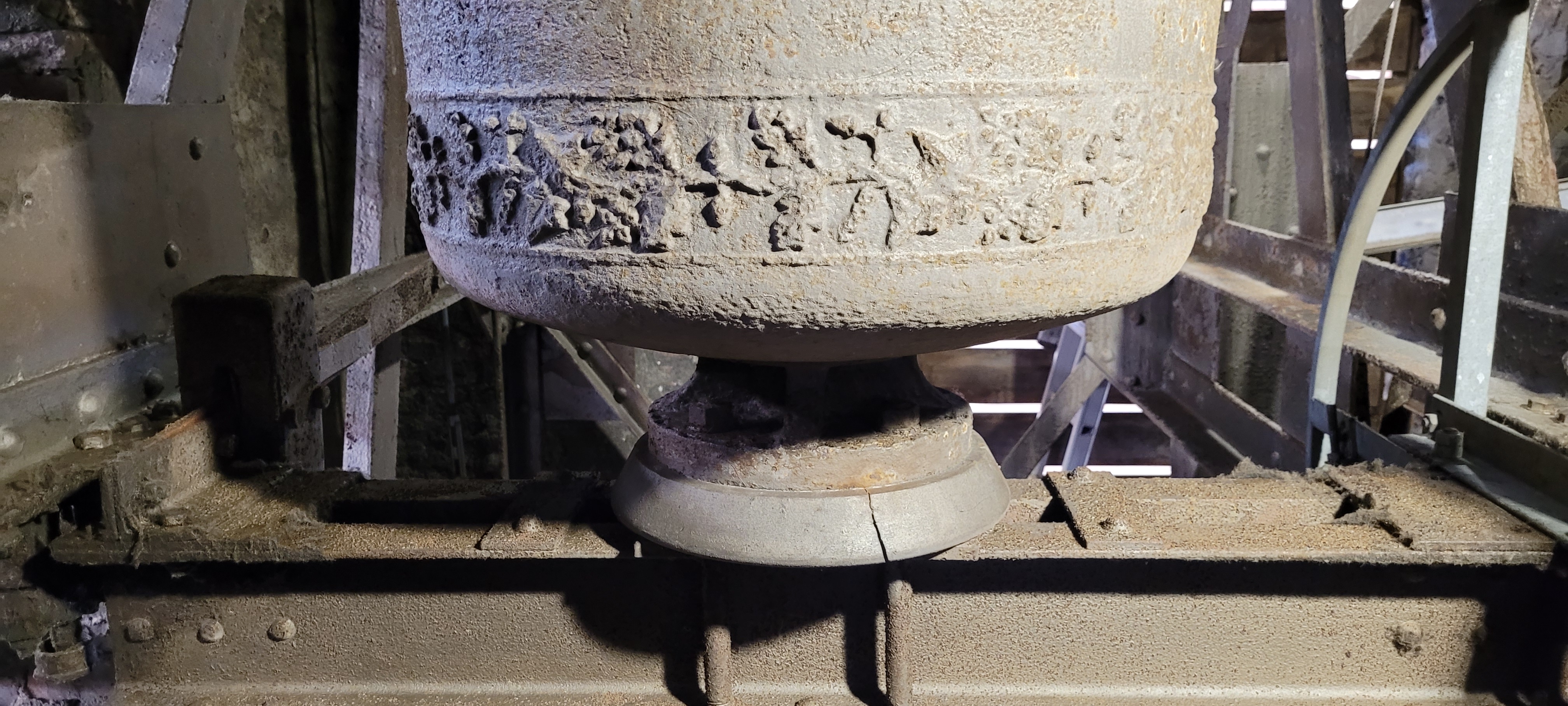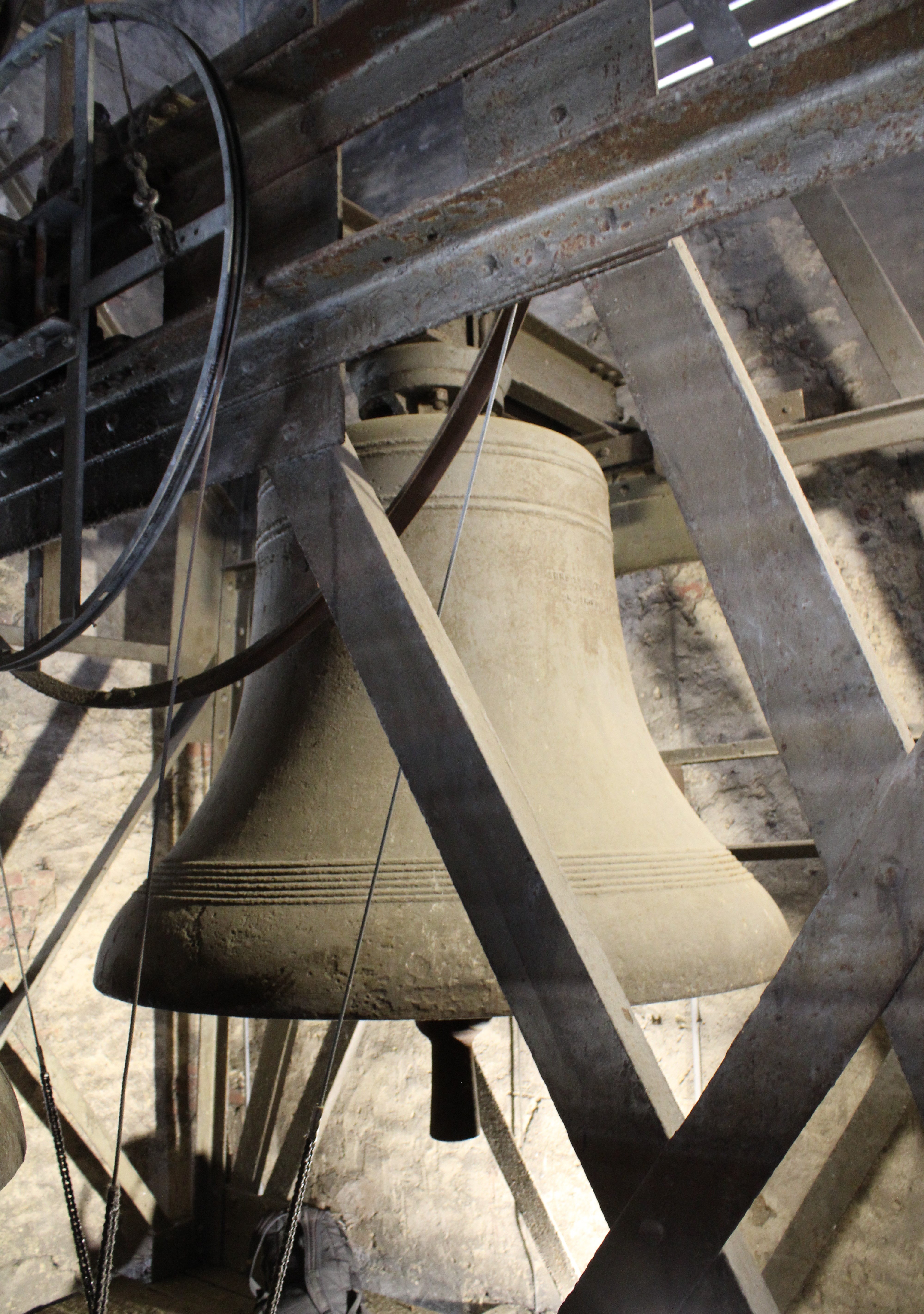 Gegossen 1871, Gussnummer 1383, Durchmesser 1260 mm, Gewicht ~850 kg. Schlagton e‘