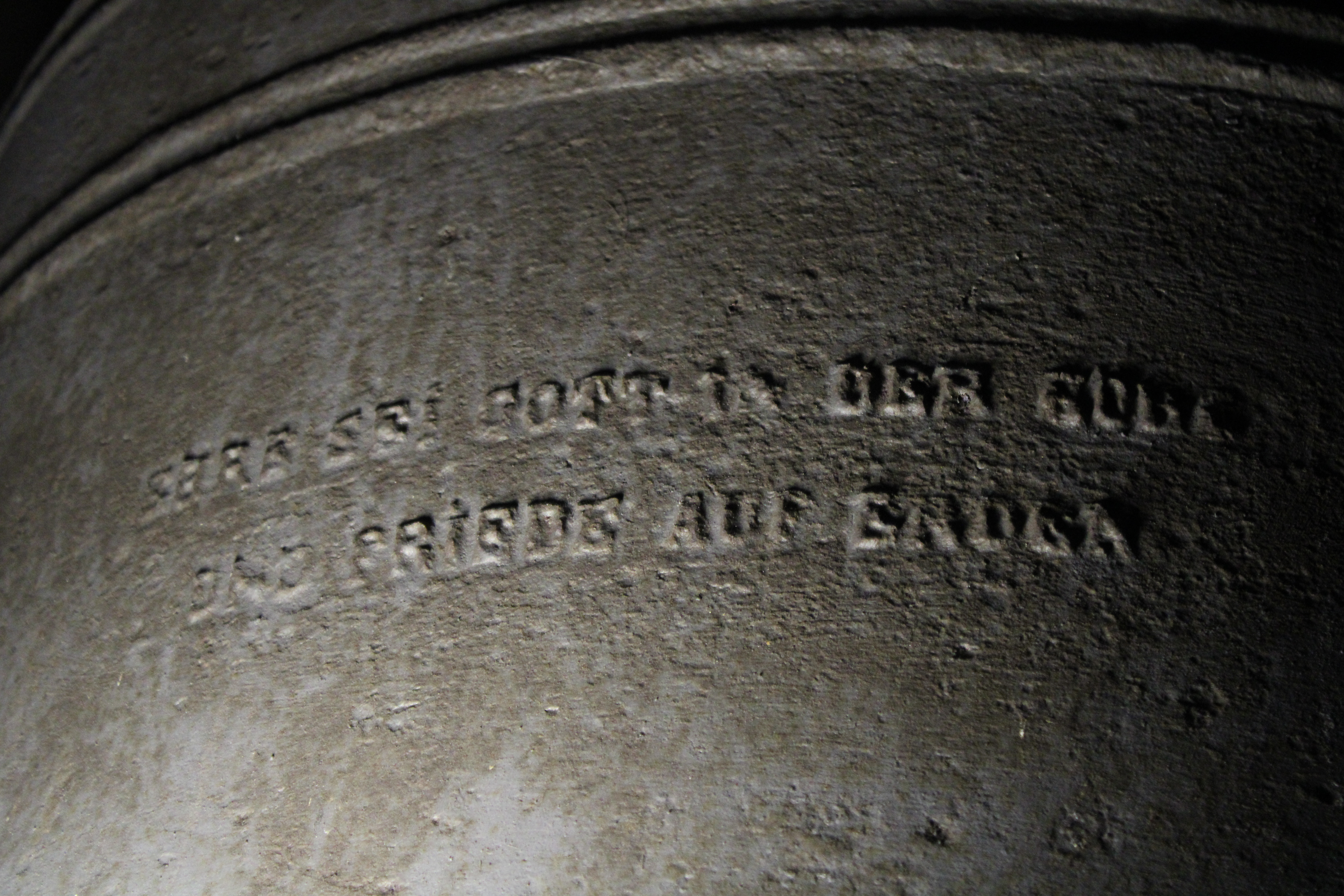 Die Hauptinschrift der Glocke lautet: EHRE SEI GOTT IN DER HÖHE UND FRIEDE AUF ERDEN